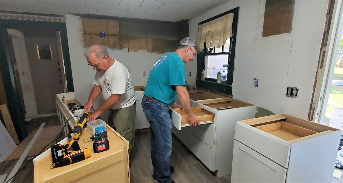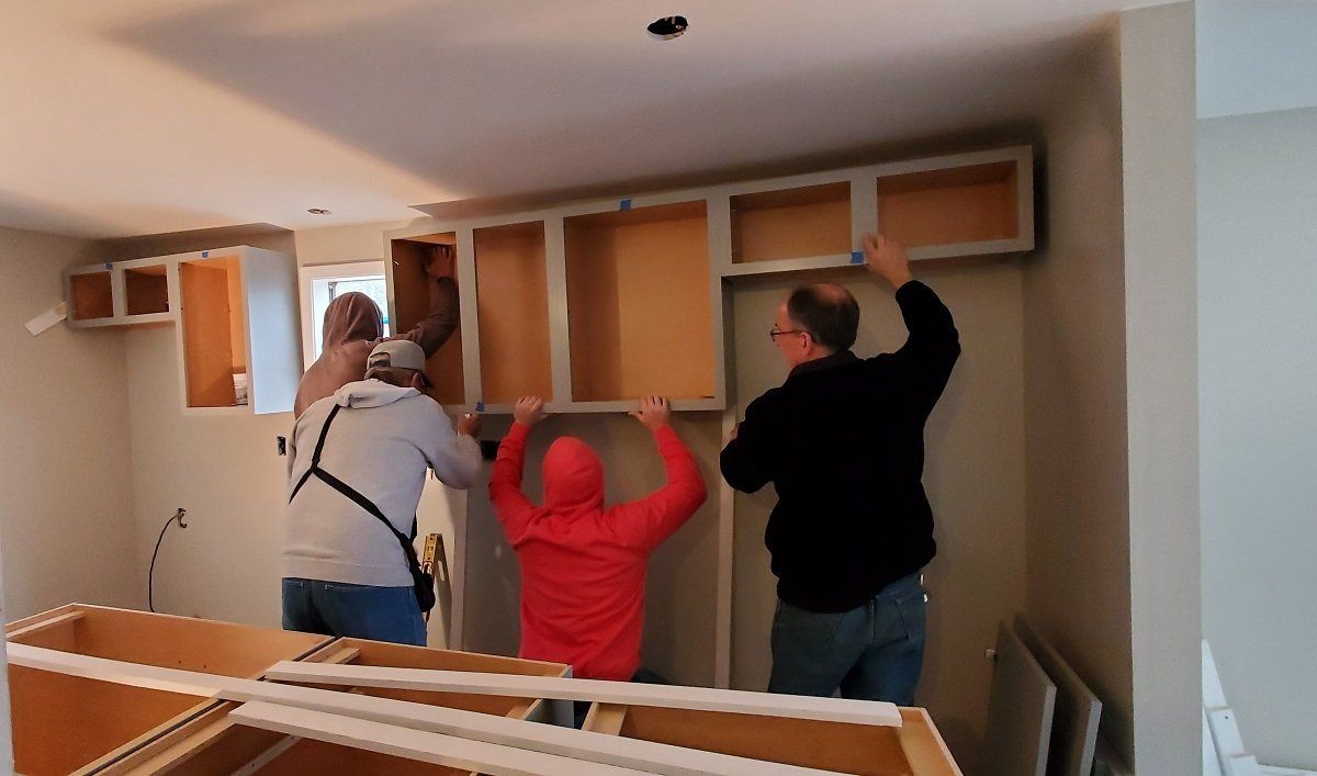 New kitchen cabinets being installed at Elaine’s house