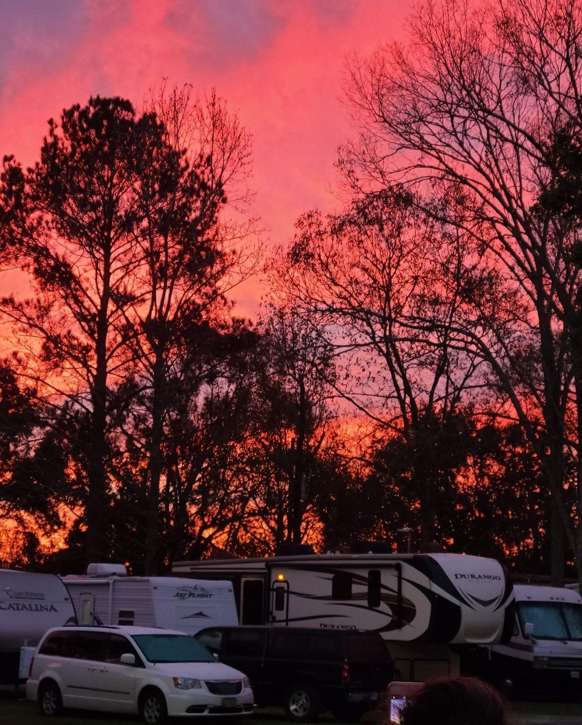 Beautiful sunrise over RV parking area