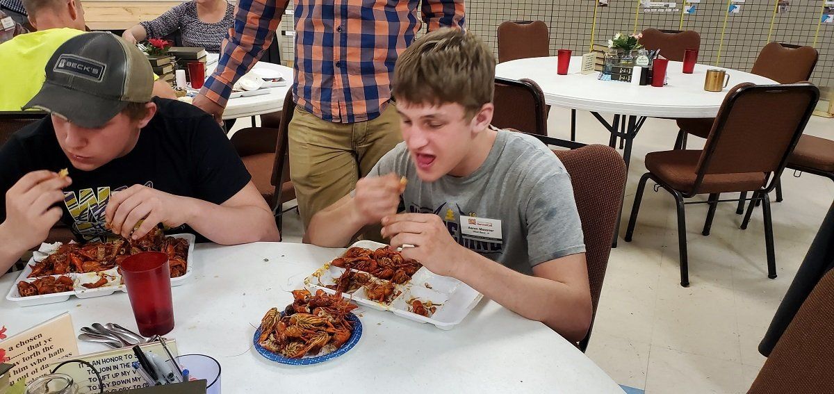 Workers at Acadian Baptist Camp prepared crawfish for the volunteers