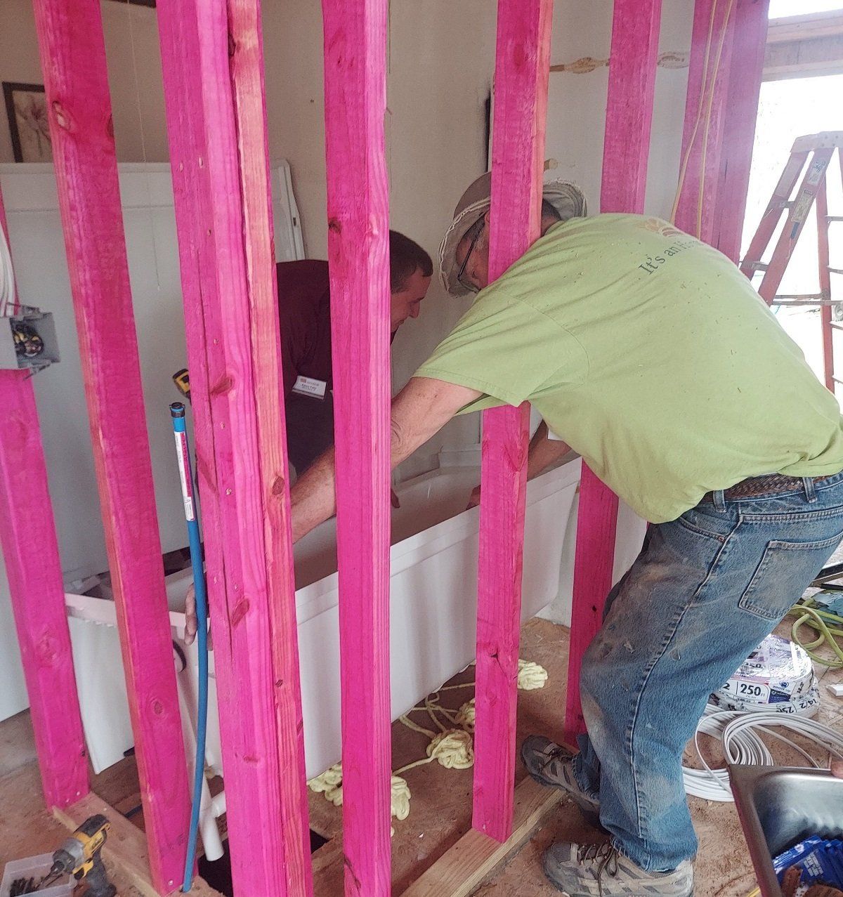 Working on the bathroom of Latitia’s home addition