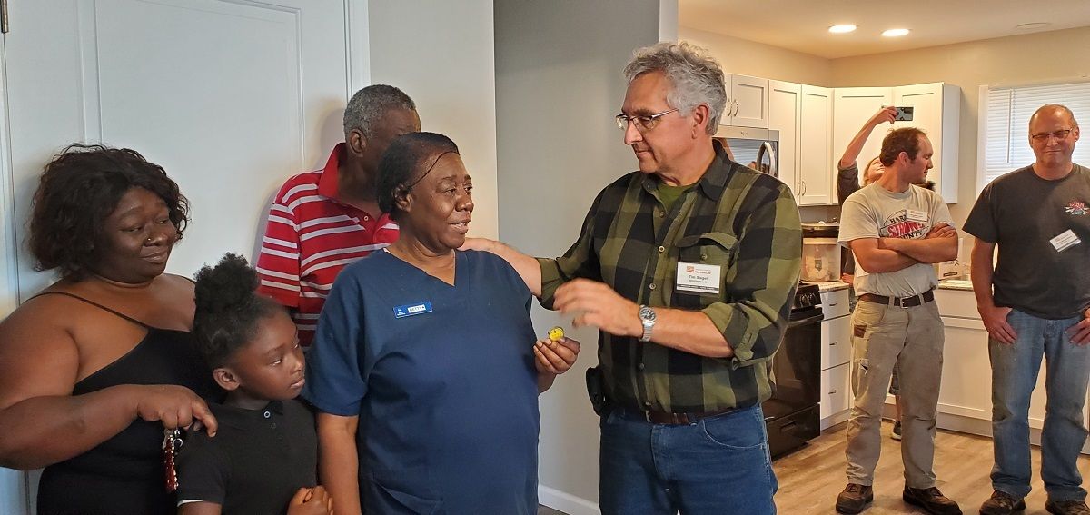 Presenting Betty with the keys to her newly remodeled house