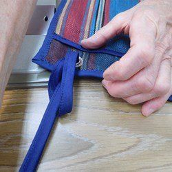 4a. Add bias tape to the bottom short edge (the edge parallel with the holes).